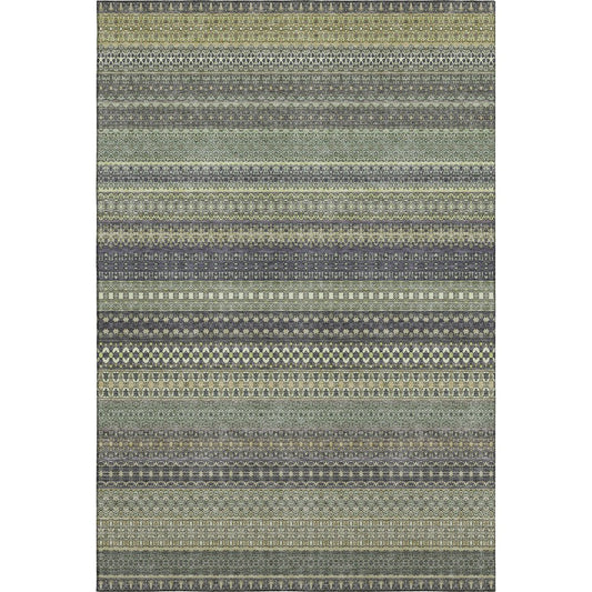 5' X 8' Sage Gray And Ivory Striped Washable Area Rug With UV Protection