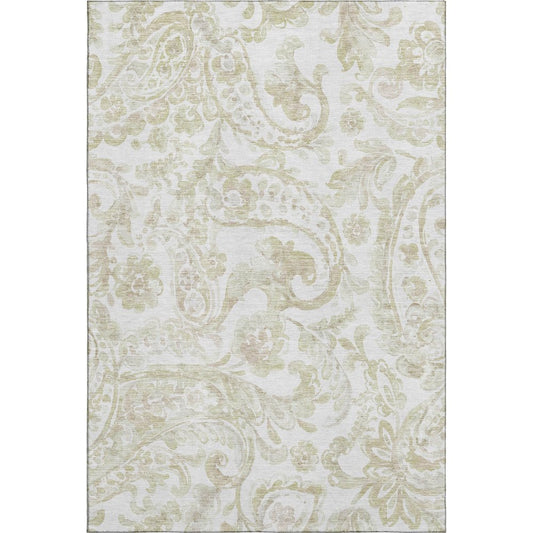 5' X 8' Beige And Ivory Paisley Washable Area Rug With UV Protection