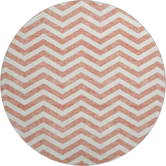 8' Salmon And Ivory Chevron Washable Round Rug With UV Protection