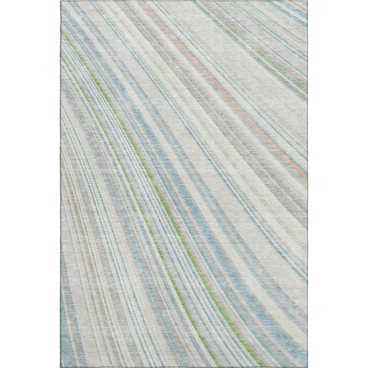 8' X 10' Ivory Green And Beige Striped Washable Area Rug With UV Protection