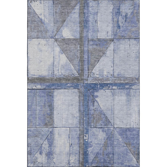 5' X 8' Denim Blue And Gray Geometric Washable Area Rug With UV Protection