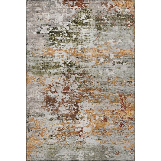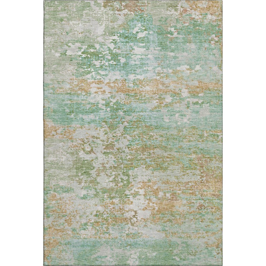 8' X 10' Artichoke Green Gray And Ivory Abstract Washable Area Rug With UV Protection