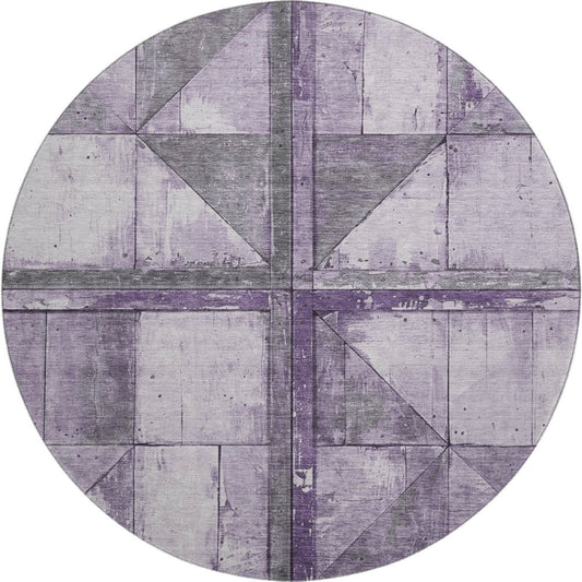 8' Purple And Gray Geometric Washable Round Rug With UV Protection