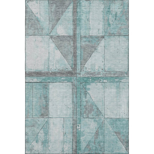 8' X 10' Teal And Gray Geometric Washable Area Rug With UV Protection