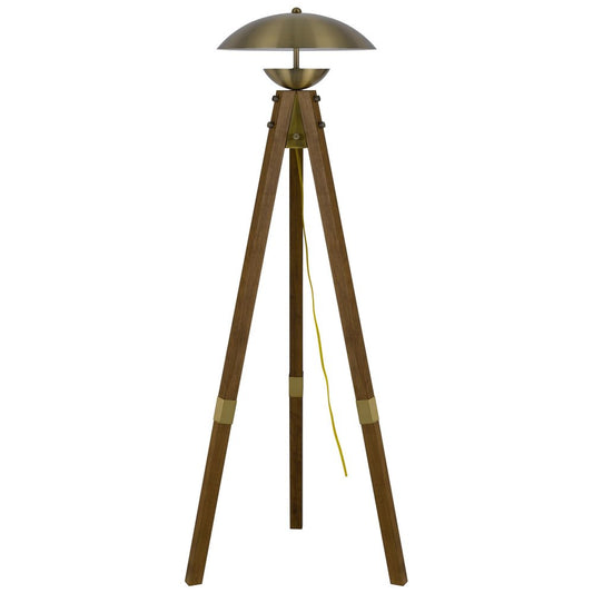 55" Brass Tripod Floor Lamp With Antiqued Brass Dome Shade