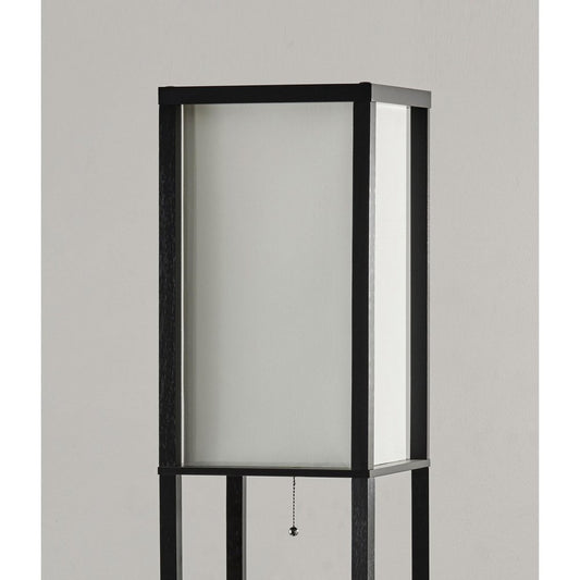 63" Black And White Solid Wood Column Floor Lamp With White Fabric Square Shade