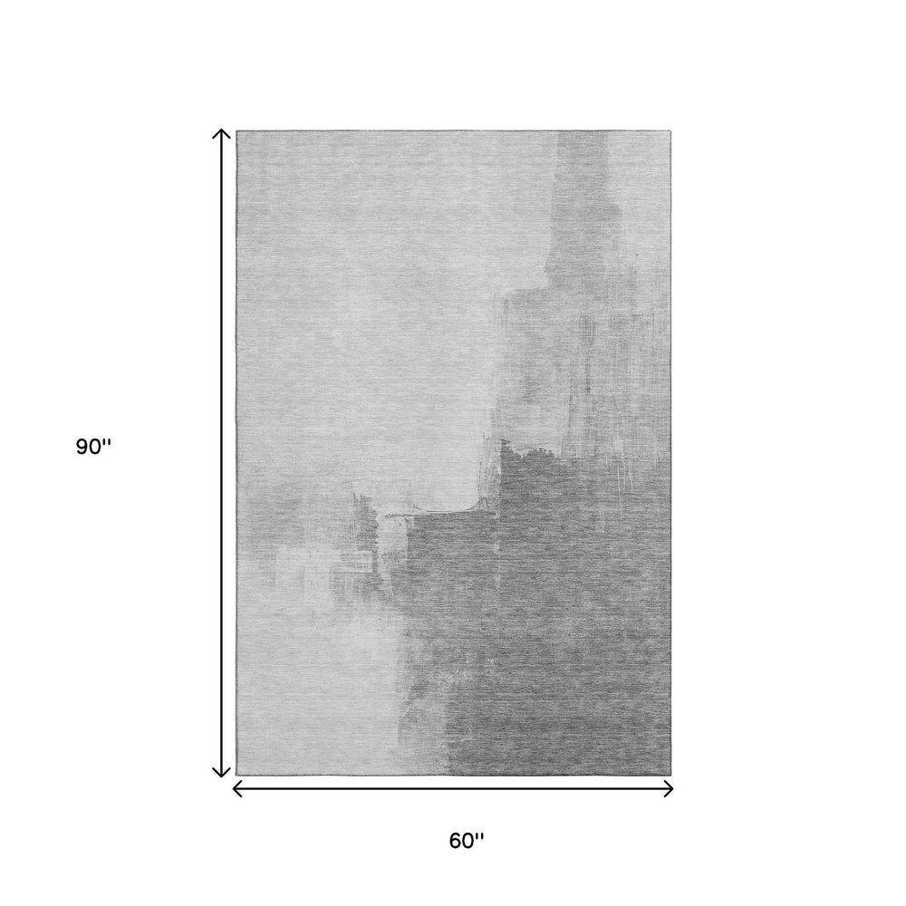 5' X 8' Silver Gray And Charcoal Abstract Washable Area Rug With UV Protection