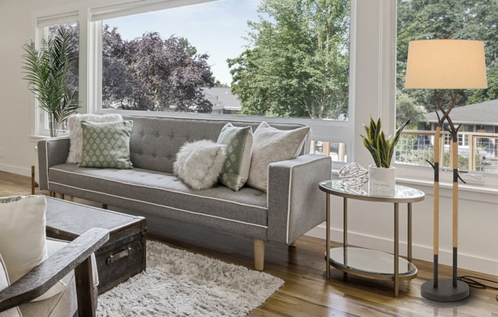 Bring of level of elegance and charm to your space with this good looking 55" black traditional shaped floor lamp with tan rectangular shade. The lamp is made of sturdy metal and features a black color. The lamp shade has a rectangular shape and is made from fabric. Classically styled, this traditional lamp features a straight pole that extends upwards from a single base. The light that this lamp throws is soft and warm to elevate the look of most any space in your home. Bring some lite and good vibes into your space with this updated and stylishly designed lamp. 54.75" H x 18" W x 18" D