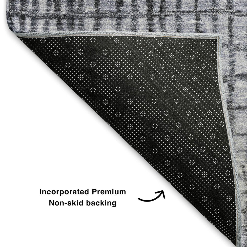 This 8-foot denim blue and ivory geometric washable round rug with uv protection, is a great way to add warmth to a room. Ideal for spaces with kids and pets, this rug is stain resistant to help repel dirt and spilled liquids. Built to last, this rug crafted from polyester fibers is known for its durability and long lasting appeal. Rugs are a great way to showcase your style, hide imperfections, warm your home and reduce noise. This larger sized, transitional styled rug is ready to create a focal point or statement piece in your room. 96.00-inch h x 96.00-inch w x 0.39-inch d.
