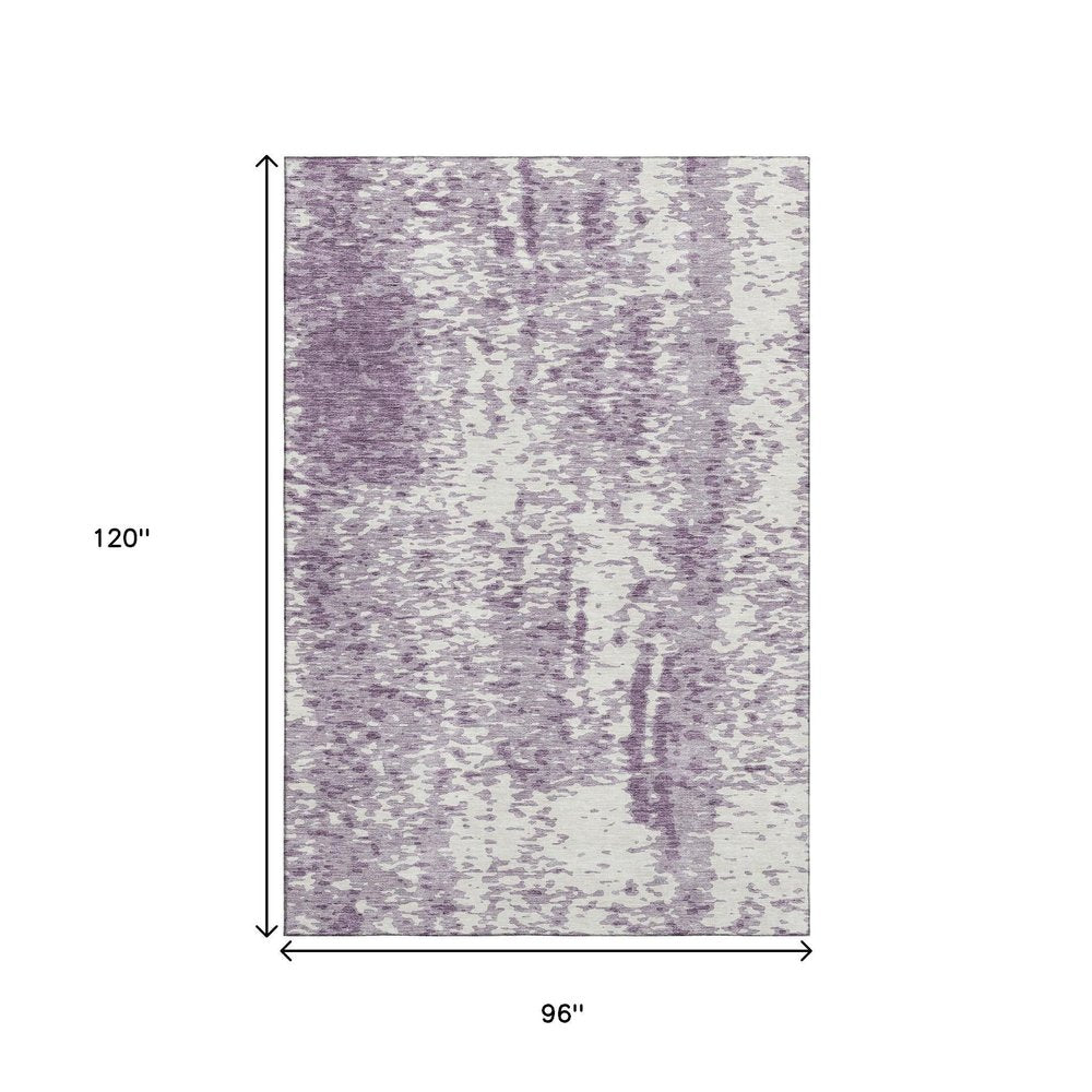 8' X 10' Lavender And Ivory Abstract Washable Area Rug With UV Protection