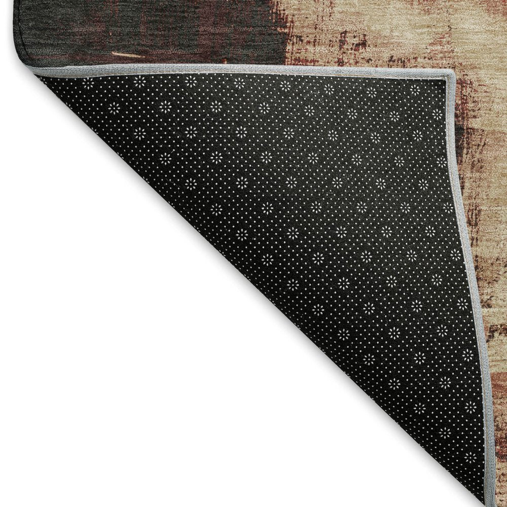 Add great coloration and comfortable texture to your space with this 8-foot x 8-foot brick red mauve and beige abstract washable round rug with uv protection. Ideal for spaces with kids and pets, this rug is stain resistant to help repel dirt and spilled liquids. Built to last, this rug crafted from polyester fibers is known for its durability and long lasting appeal. Rugs are a great way to showcase your style, hide imperfections, warm your home and reduce noise. This larger sized, transitional styled rug is ready to create a focal point or statement piece in your room. 96.00-inch h x 96.00-inch w x 0.39-inch d.
