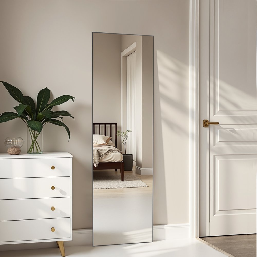 Add a touch of sunshine to any space in your home with this 59-inch black aluminum freestanding ornate framed accent mirror. Framed with aluminum, this mirror will bring practical application and fashionable design to your space, adding some modern flair to your decor. Features quality craftsmanship in every facet that ensures durability and long-lasting wear. Produced with premium quality glass for a beautiful reflection, this mirror will provide an exceptional visual experience. 59.00-inch h x 16.00-inch w x 0.50-inch d.