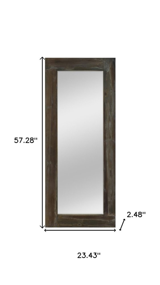 Beautify your space with this 57-inch brown solid wood freestanding ornate framed accent mirror. Framed with solid wood, this mirror will bring practical application and fashionable design to your space, adding some modern flair to your decor. Features quality craftsmanship in every facet that ensures durability and long-lasting wear. Produced with premium quality glass for a beautiful reflection, this mirror will provide an exceptional visual experience. 57.28-inch h x 23.43-inch w x 2.48-inch d.